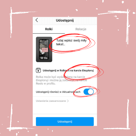 W tym miejscu też widzisz informację, że Instagram wrzuci rolkę na kartę eksploruj.
